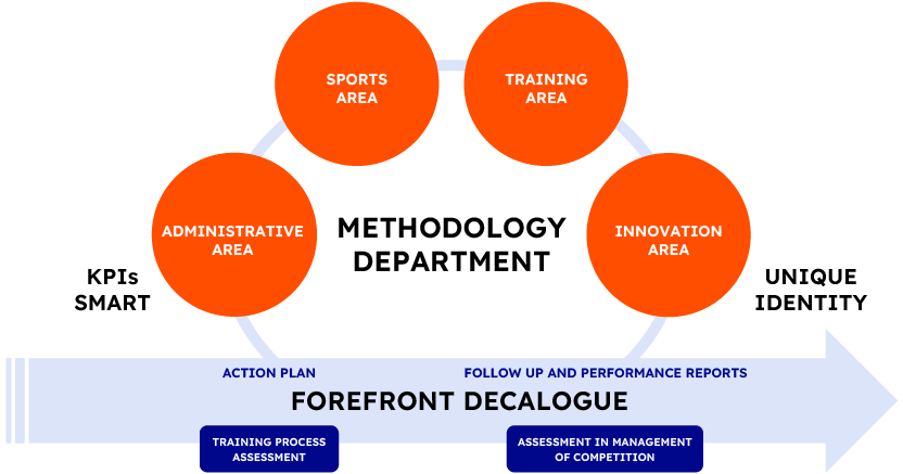 This allows the development of an action plan that defines concrete actions to achieve the objectives in the 4 areas mentioned.The entity will receive reports where the actions are evaluated and reviewed based on KPIs that measure the progress of the action plan. Our intervention is broken down in our ForeFront Decalogue which you will find below. To each point we bring a unique vision in line with our experience in Professional Clubs.