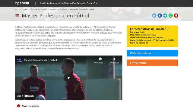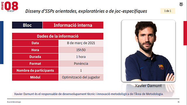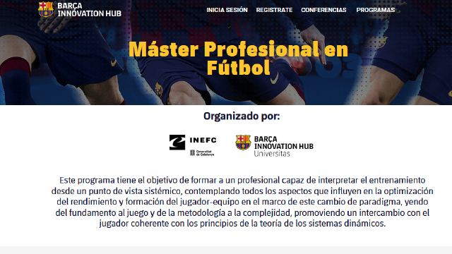 Coordination of the modules of FC Barcelona’s training methodology and development of players with a focus on complexity, from the Professional Master in Football, organized by the Barça Innovation Hub and the INEFC-Barcelona University.